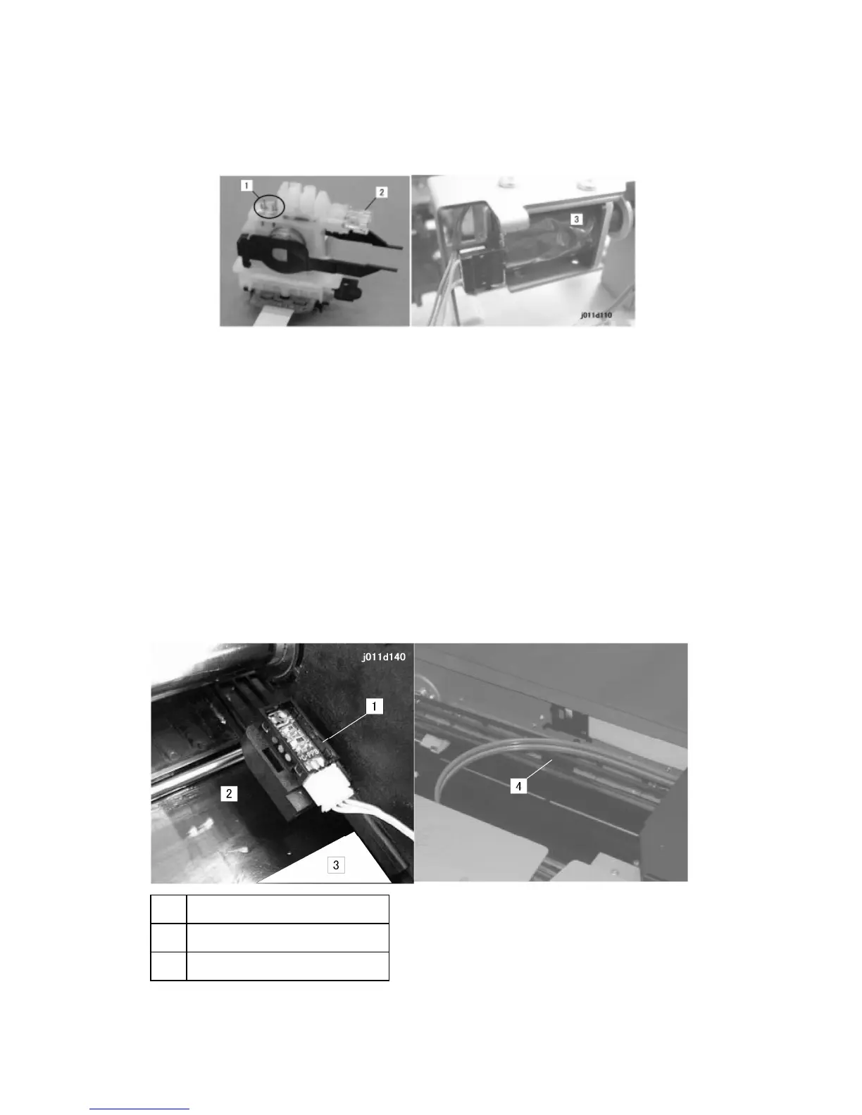 Two sensor pins [1] (1 pair for each tank) monitor the amount of air in the print head tank.