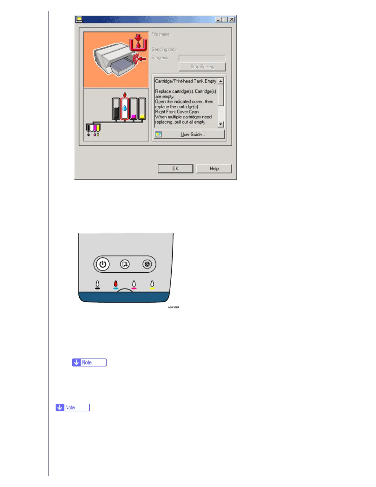 If the background of the image in the top left corner of dialog box is red, the printer has run out of the indicated