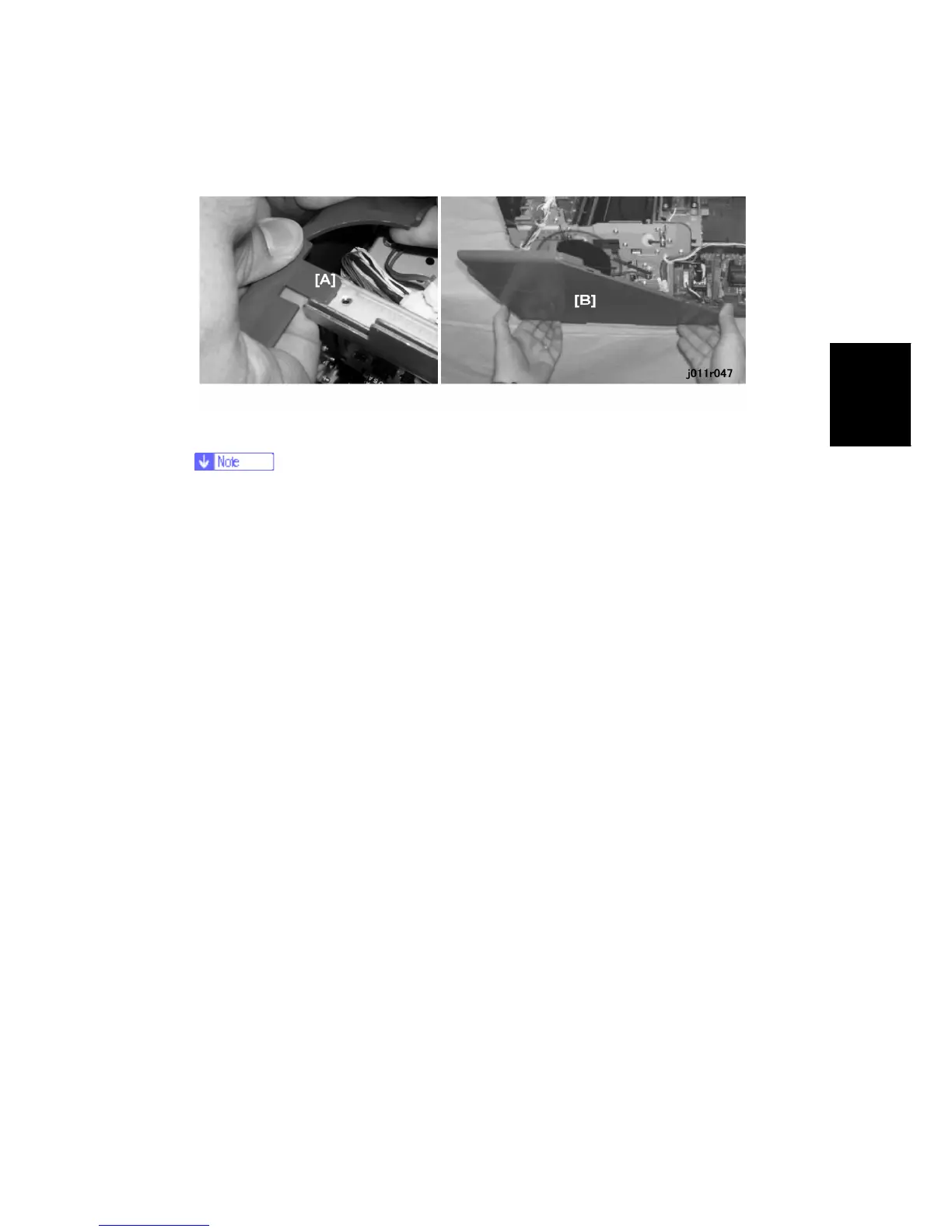 1. On the J011, disconnect the top tab [A] from the hole on the frame.