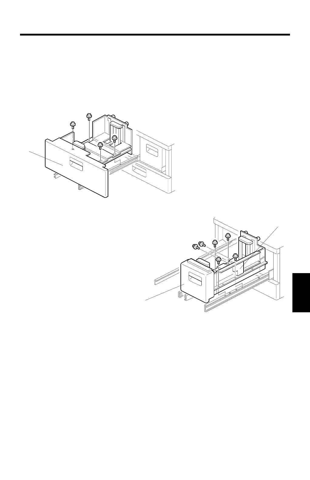 3. Draw out the right tandem tray, then remove the friction pad unit [B] from the