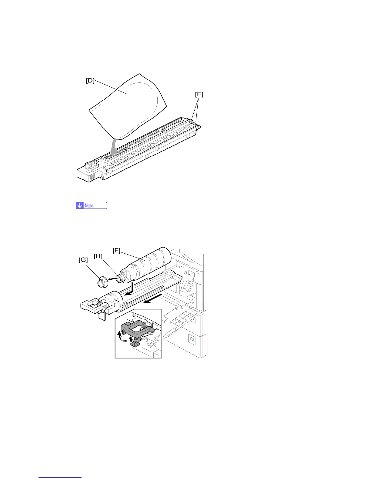 Do not spill the developer on the gears [E]. If you have spilled it, remove the