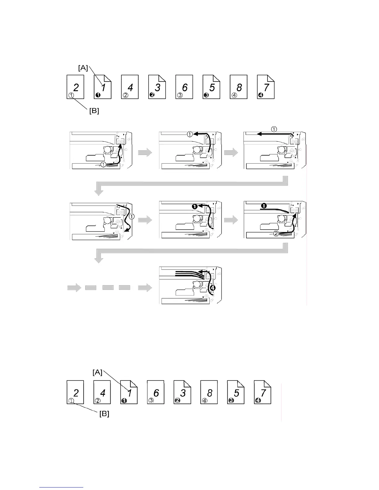 [B] in the illustration shows the order of sheets of copy paper (if black, this indicates the