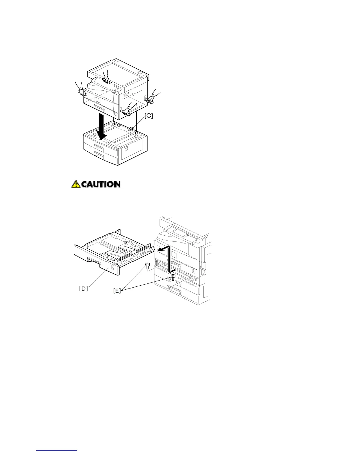 Before placing the copier on the paper tray unit, make sure that the harness [C]
