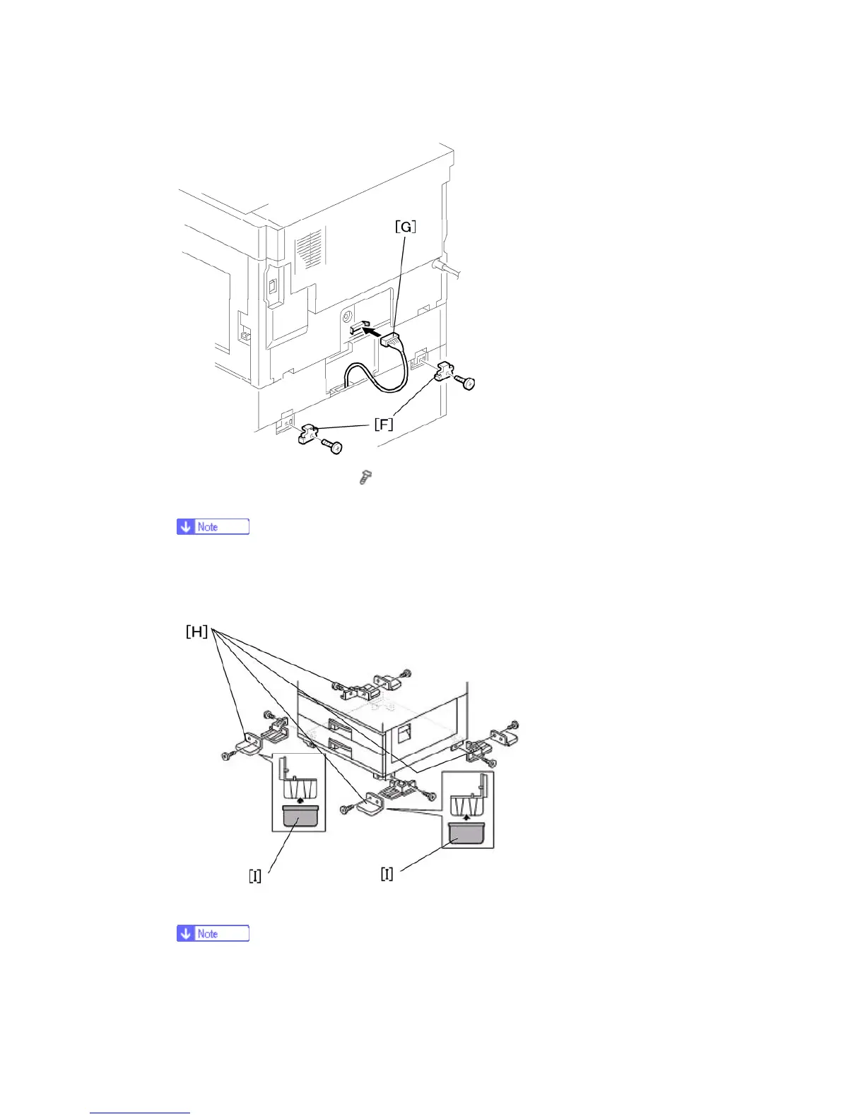 11. Install the four brackets with long supports [H] and covers [I](2 screws each).