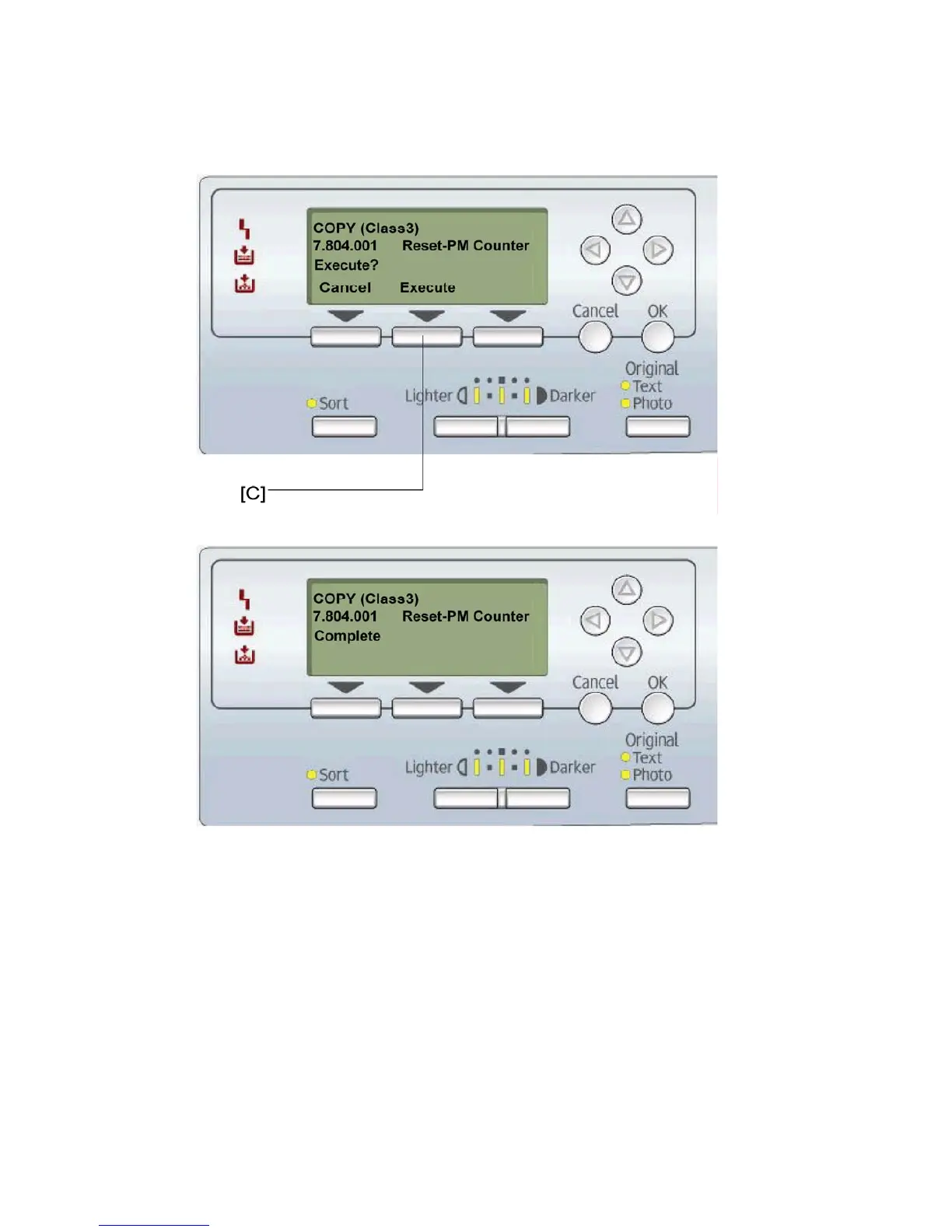 6. To reset the PM counter, press the button [C] below the message "Execute."