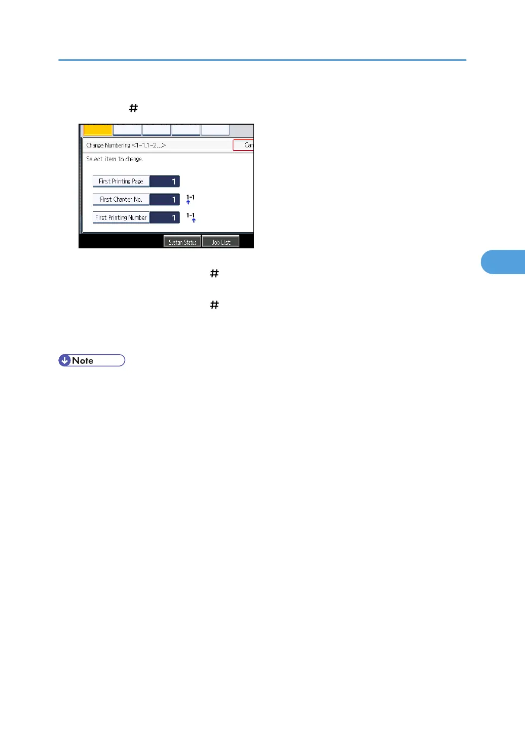3. Press [First Chapter No.], enter the chapter number from which to start numbering with the