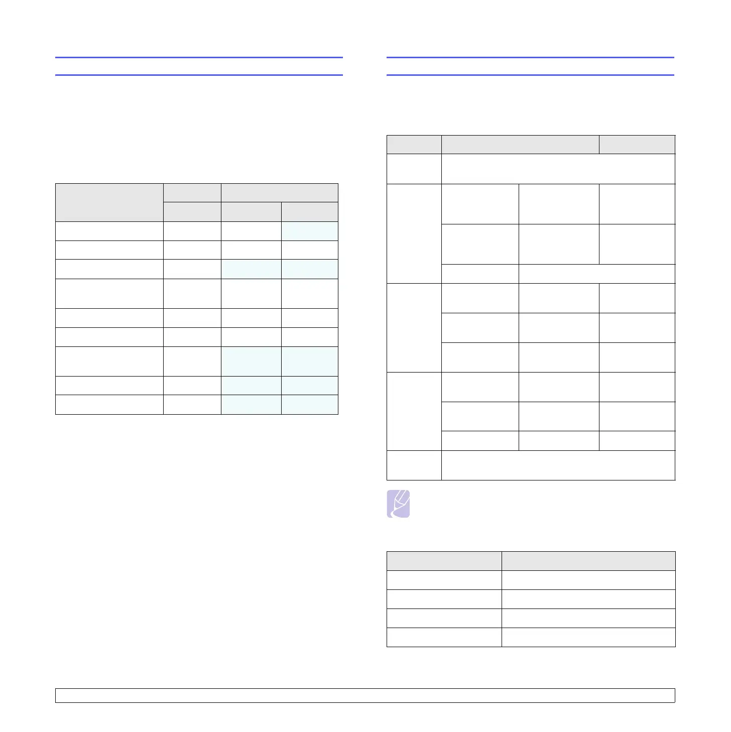 table shows a general overview of features supported by your printer
