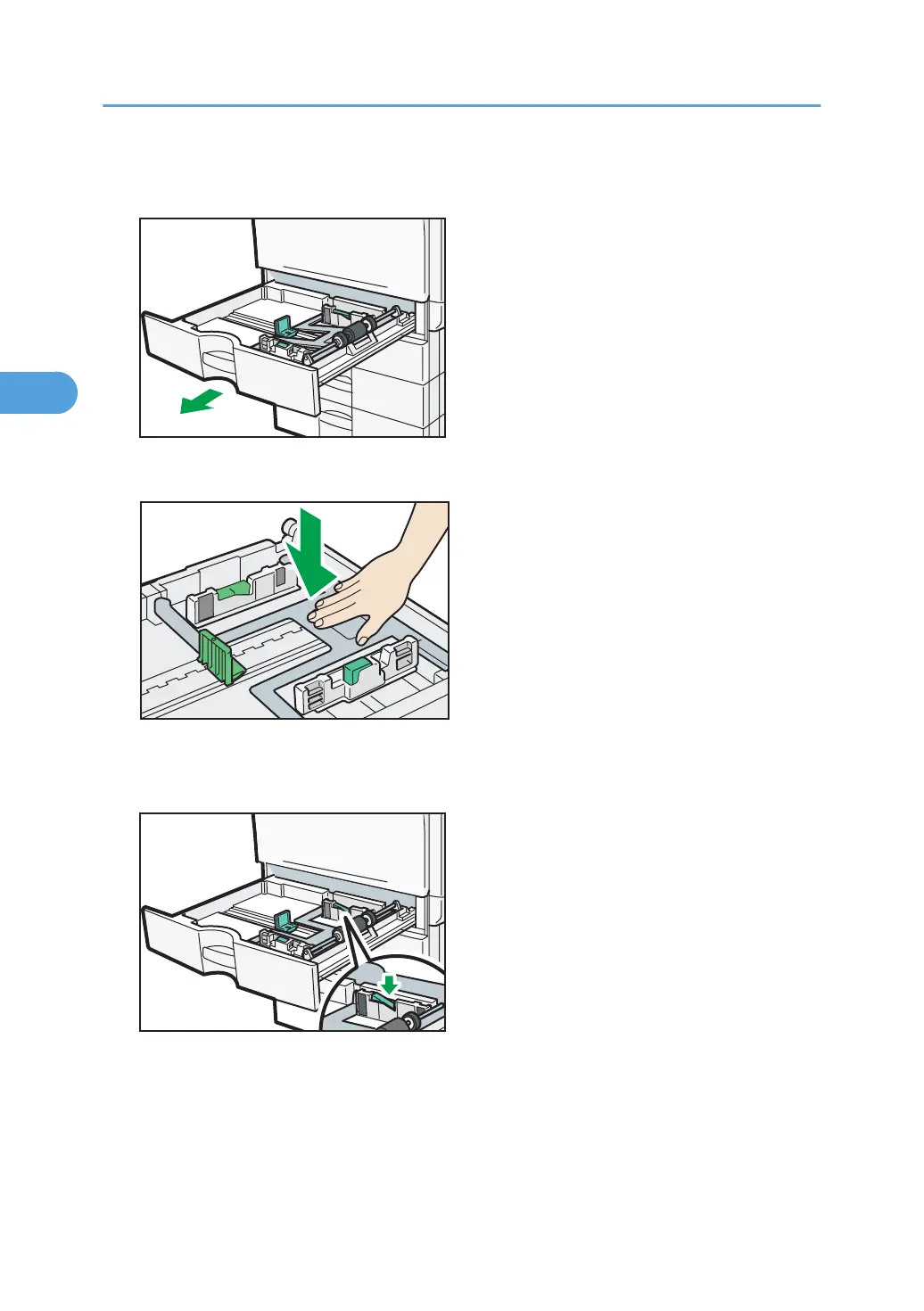 1. Check that paper in the paper tray is not being used, and then pull the tray carefully out