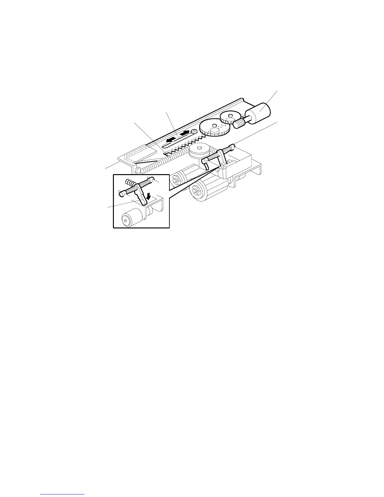 the spring is pulled, the lever moves upwards, reducing the paper feed pressure.