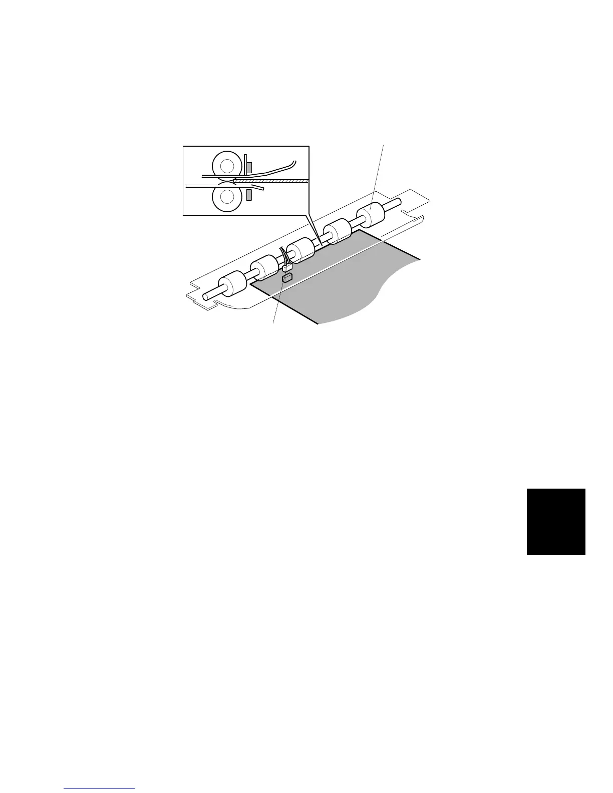 The double feed sensor [A] at the registration roller [B] detects differences in the