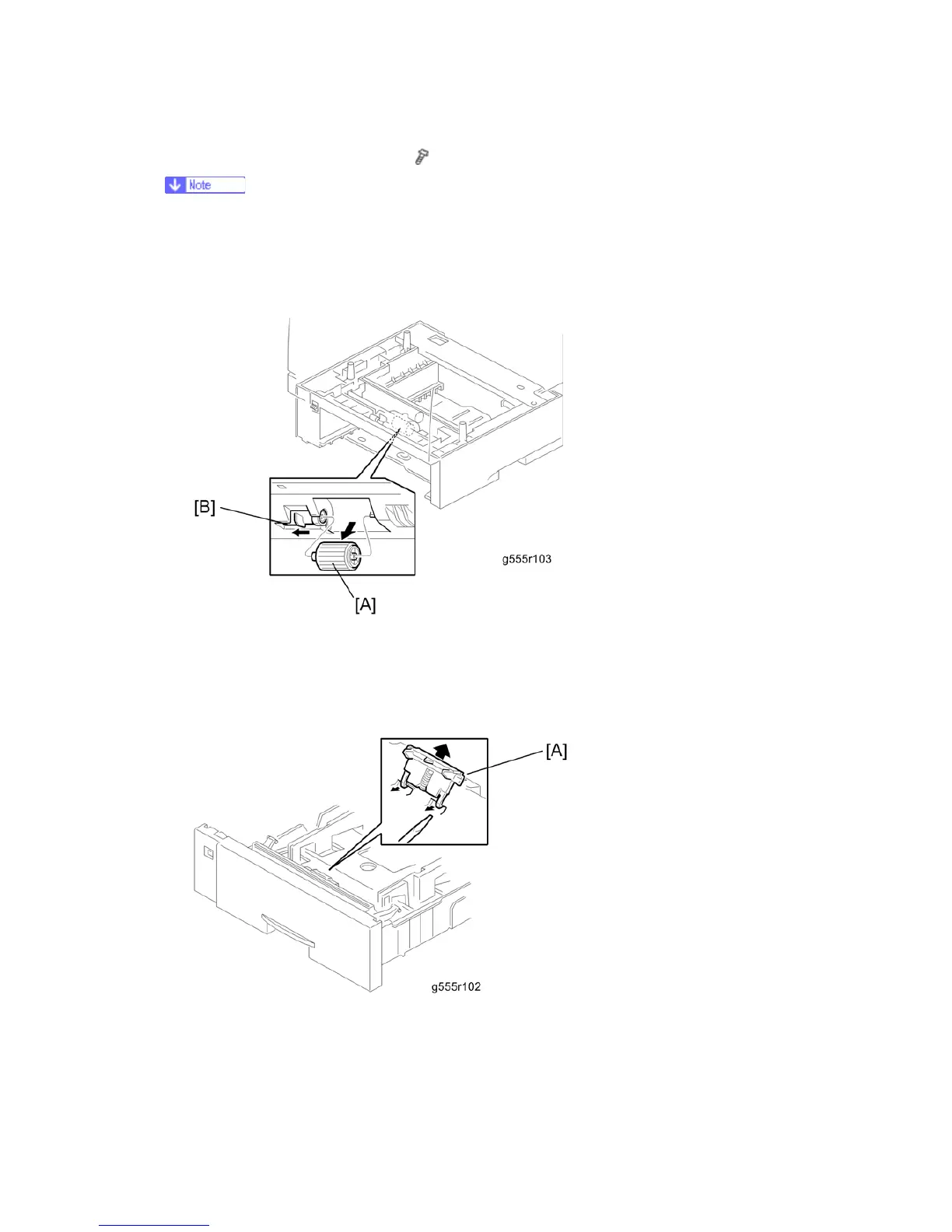4. Remove the paper feed unit [B] ( x 5).