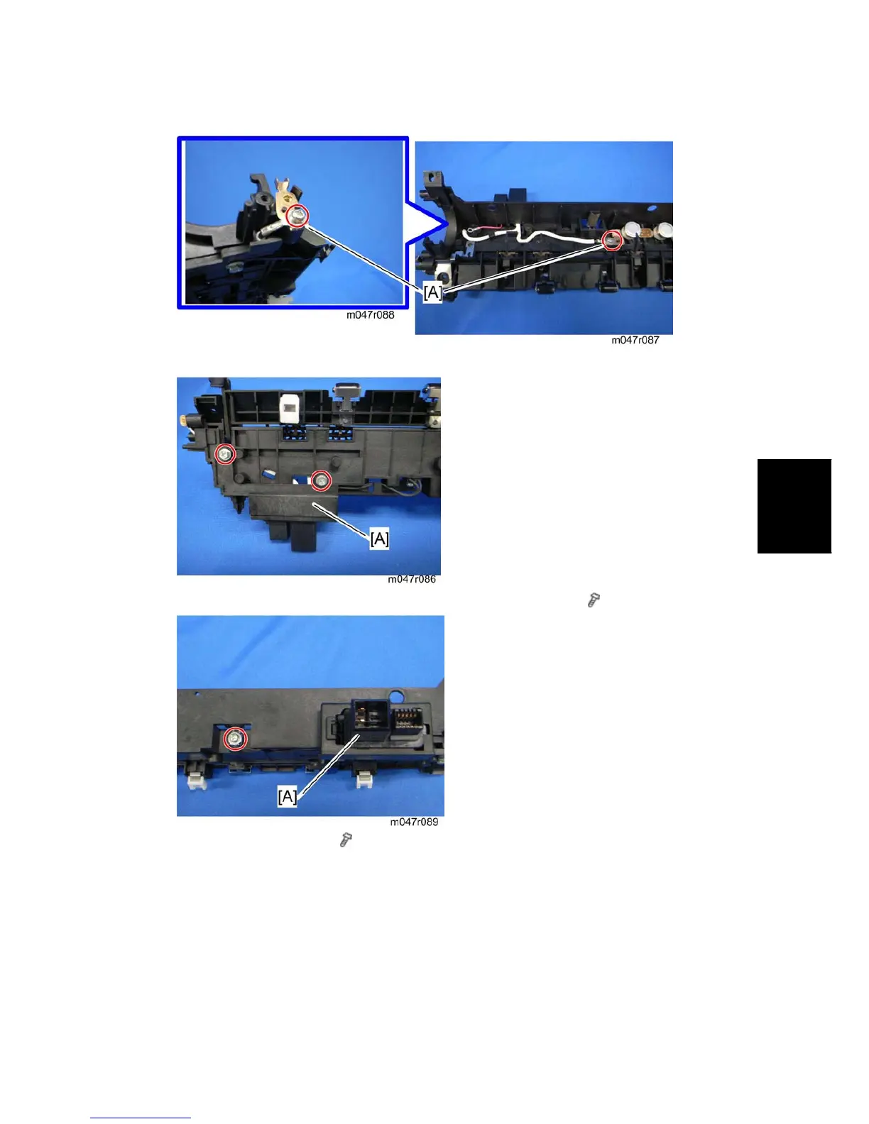 5. Upper wire cover [A] on the top of the fusing upper unit assembly (