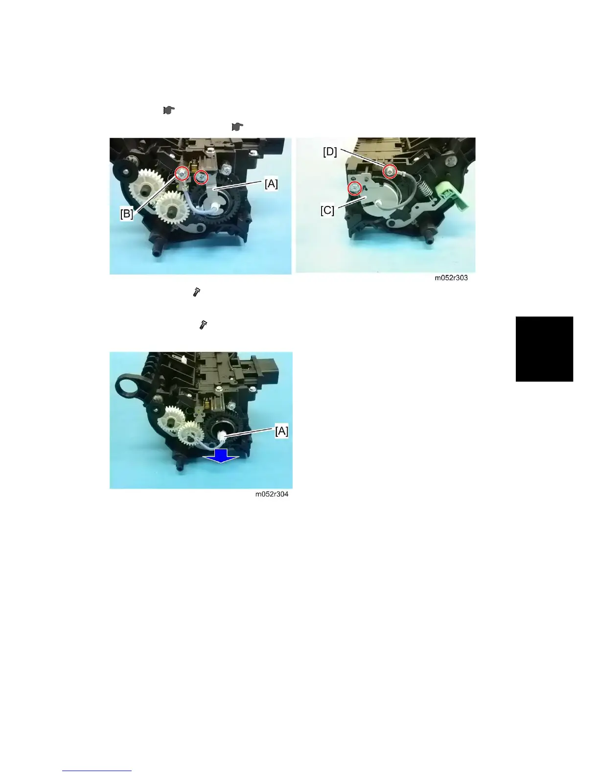 6. Remove the screw [D] on the right terminal of the fusing unit.