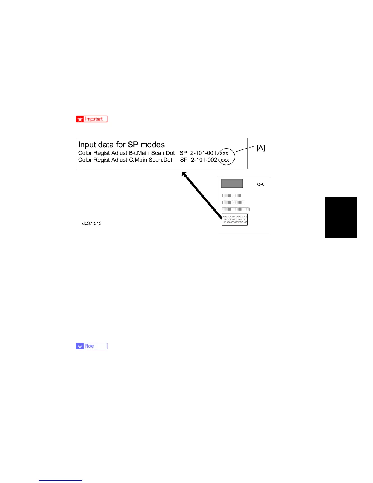 3. Input the SP settings on the sheet provided with a new laser unit.