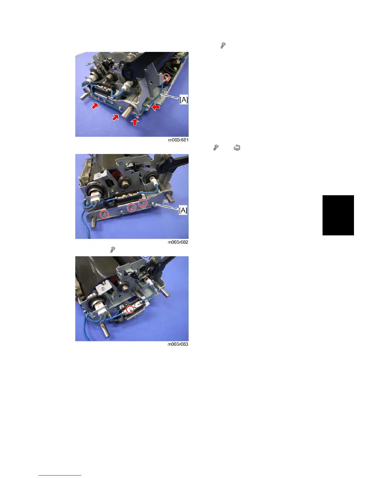 6. Release the pins [A], and then remove the bracket [B] ( x 4).