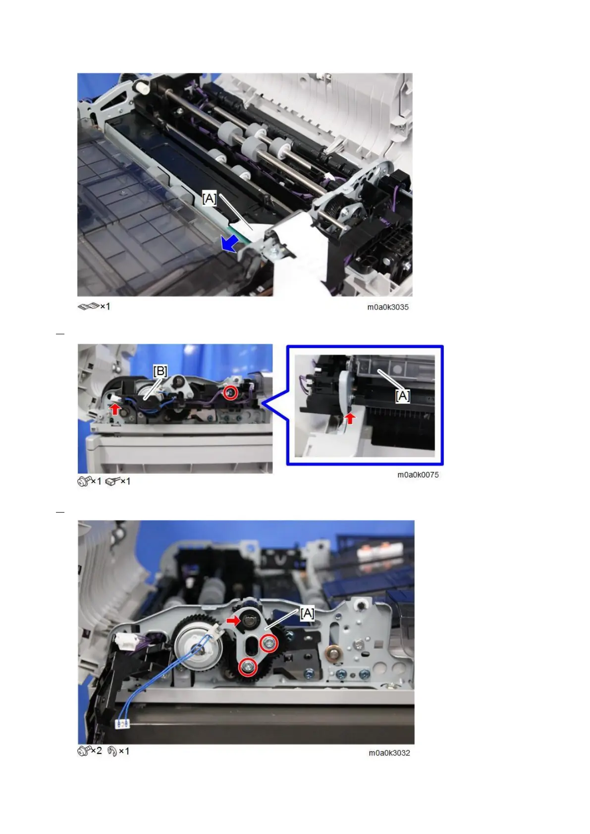 6. Remove the harness guide [B] by releasing the hook while swinging up the original tray [A].