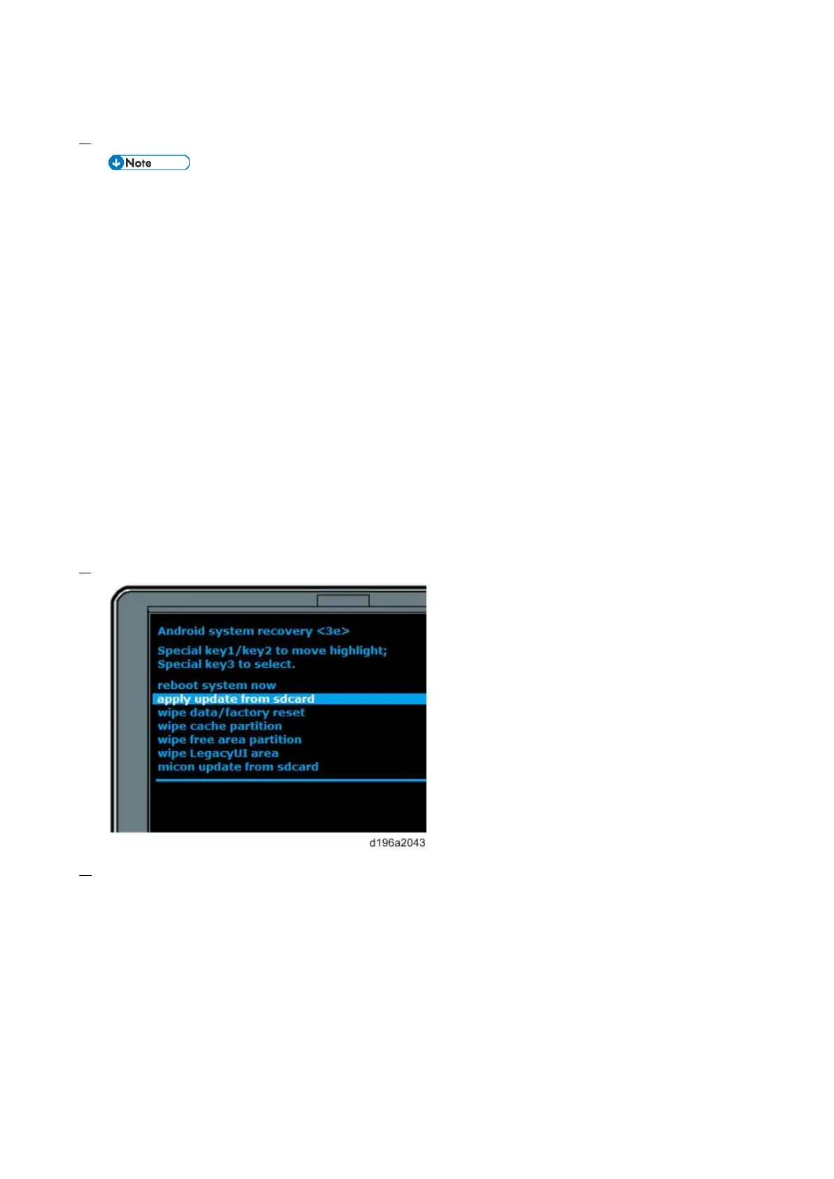 3. Select “apply update from sdcard” in the “Android system recovery” screen, and then press the [EX3] key.