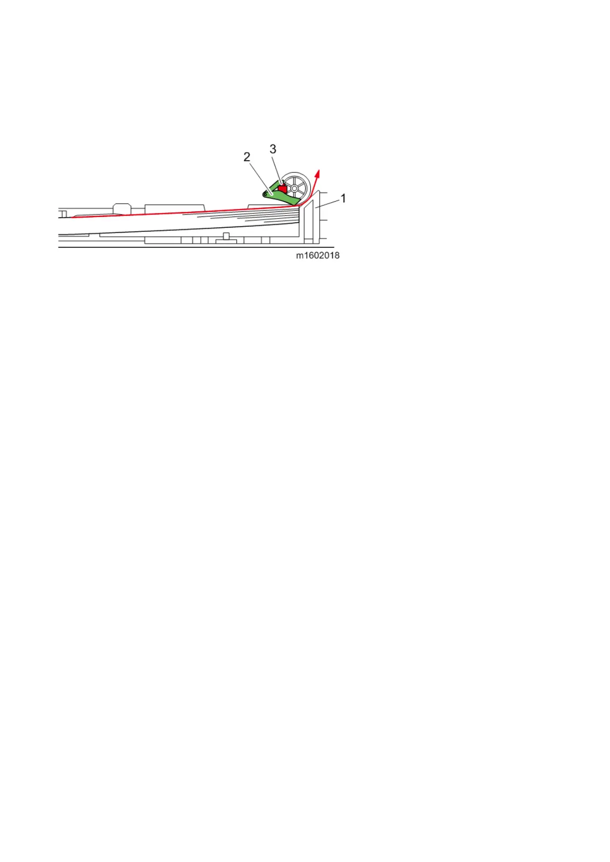 When the optional bank [1] runs out of paper, the feeler [2] drops into the cutout in the bottom plate to actuate the