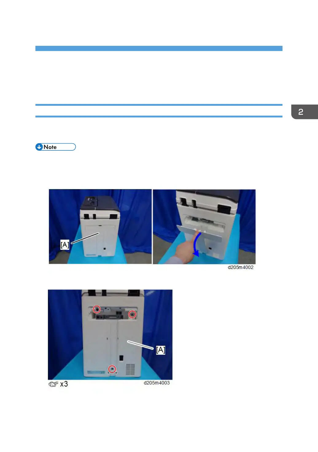 2. Remove the screws of the rear cover [A].