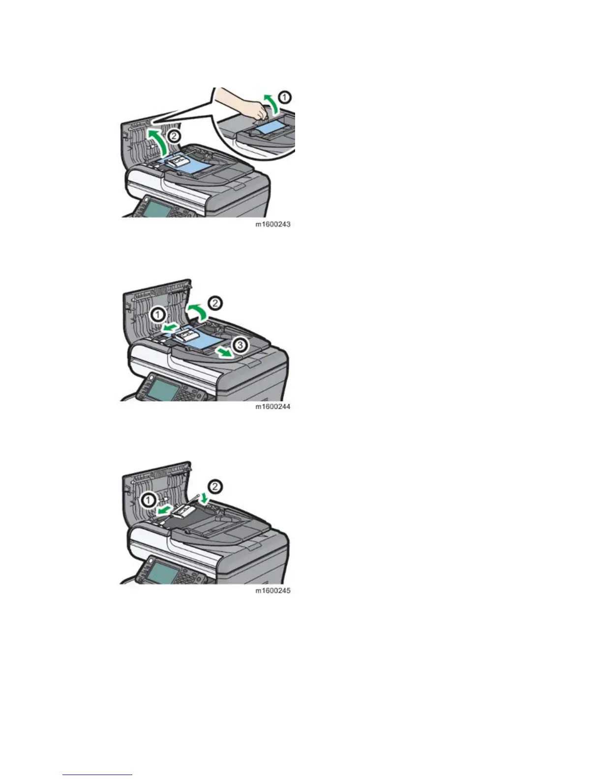 6. Pull up the open lever of the ARDF cover, and then open the ARDF cover.