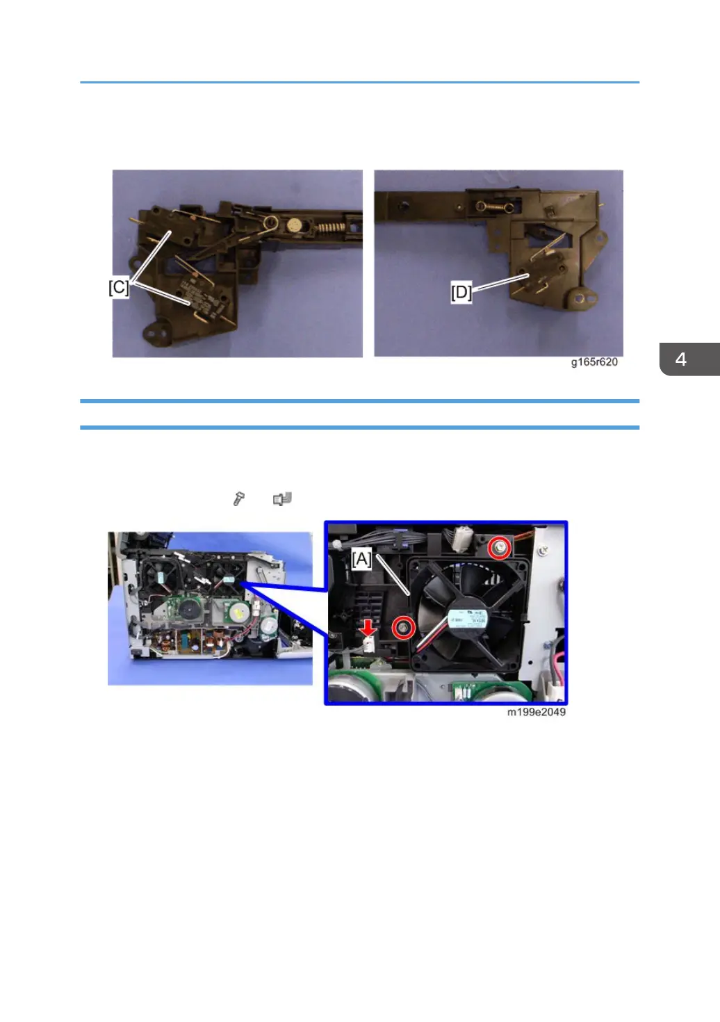 3. Fusing fan base [A] ( × 2, × 1)