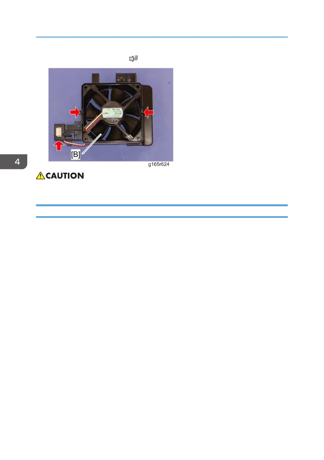 • Install the fusing fan motor with its decal facing the outside of the machine.