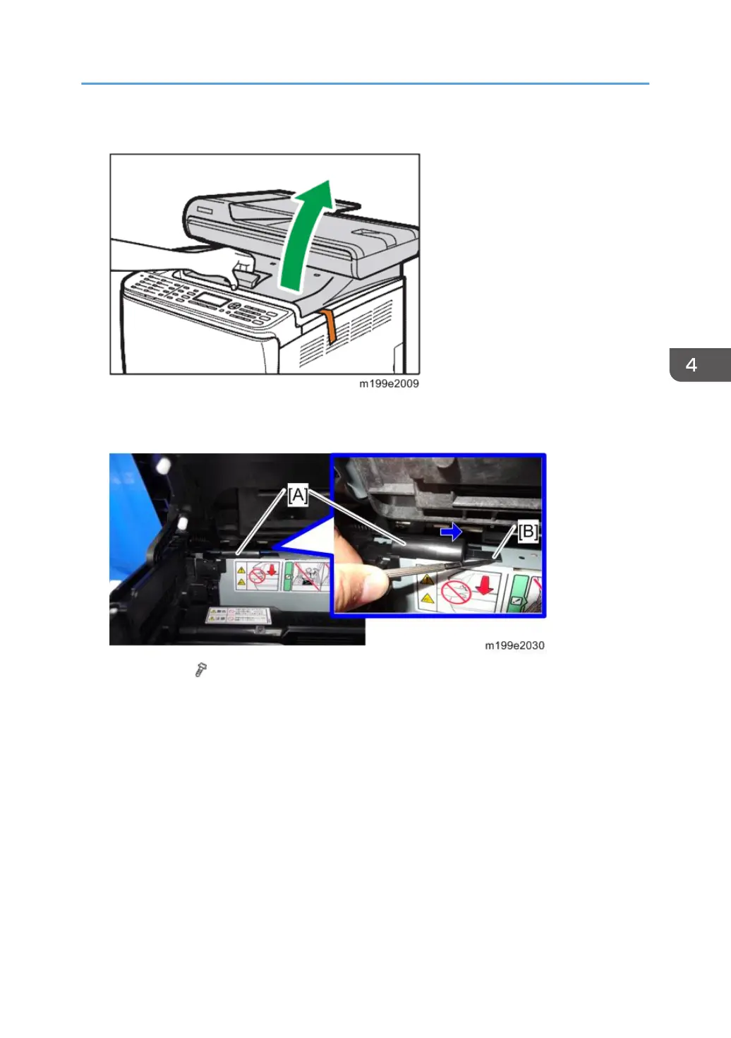 Lift up the hook [B] of the harness guide and slide the harness guide to the right.