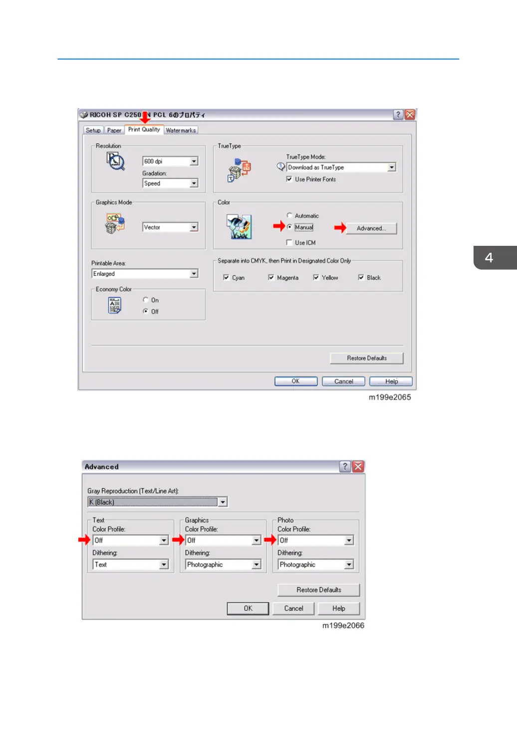 5. Select “Off” for the three Color Profile pull-down menus shown (i.e. for Text, Graphics,