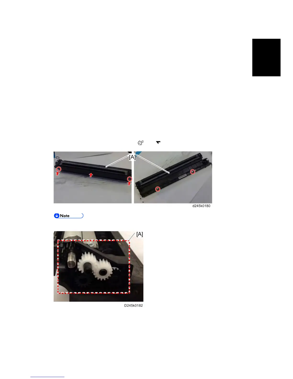 12. Turn the bottom part [C] over and rotate the gears to remove the developer.