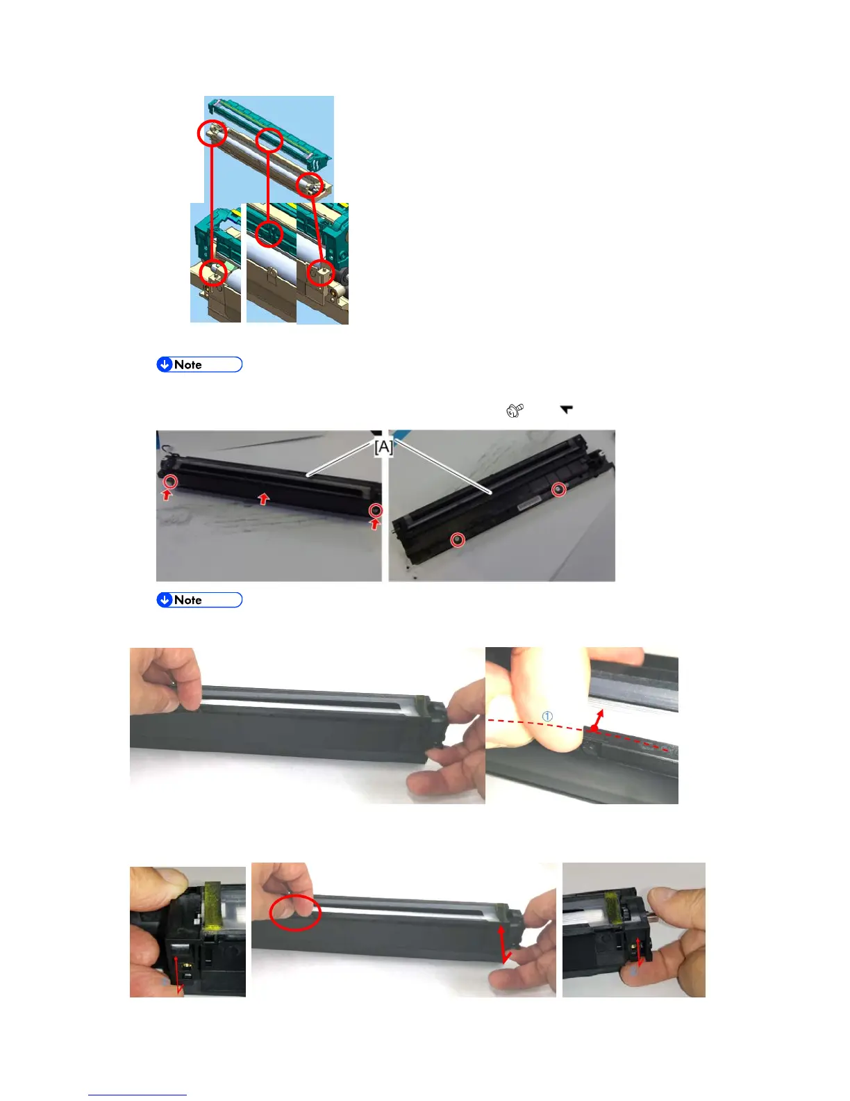 • Slightly bend the Upper Case to Development Roller side (Direction ① shown in a