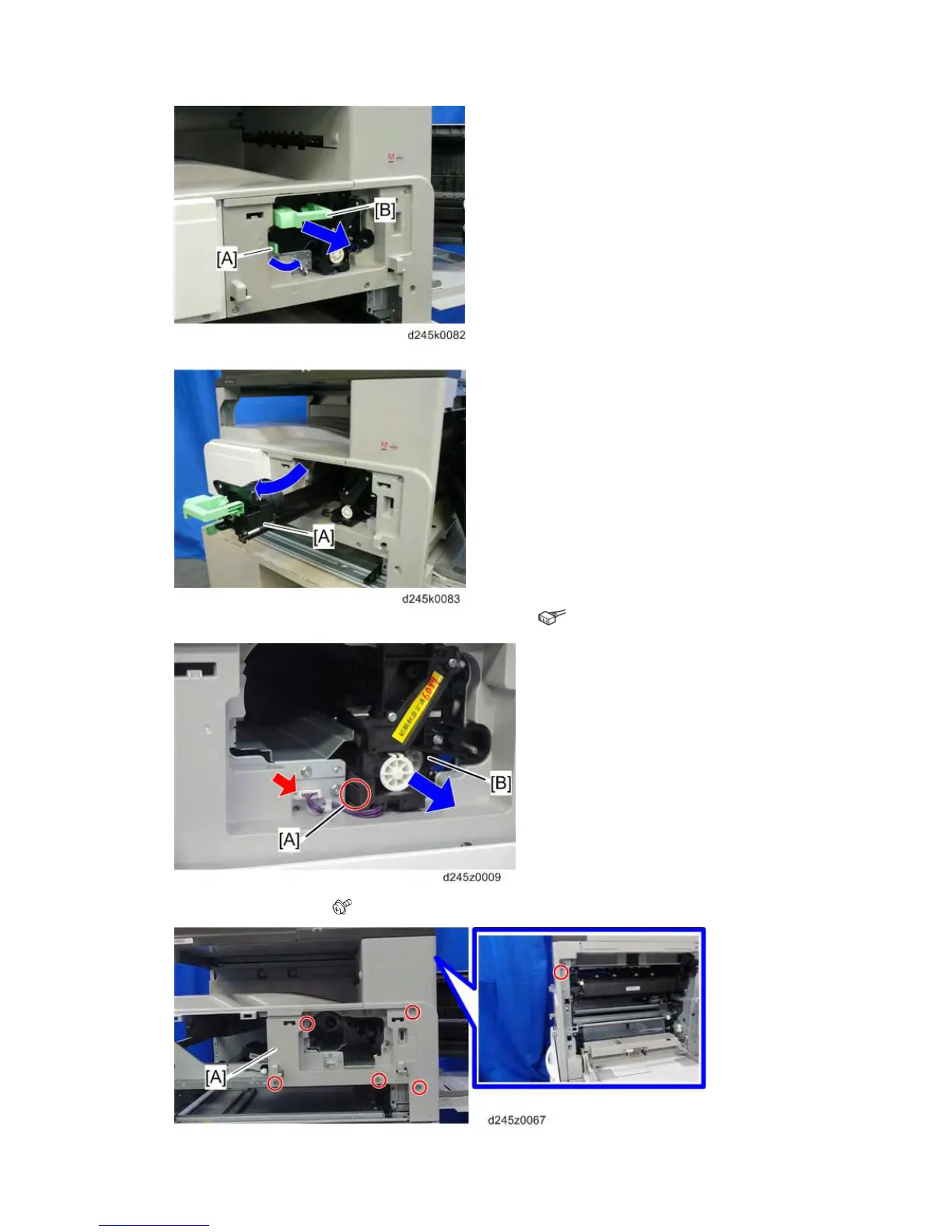 6. Hold the lock [A], and then remove the PCDU [B] ( x 1).