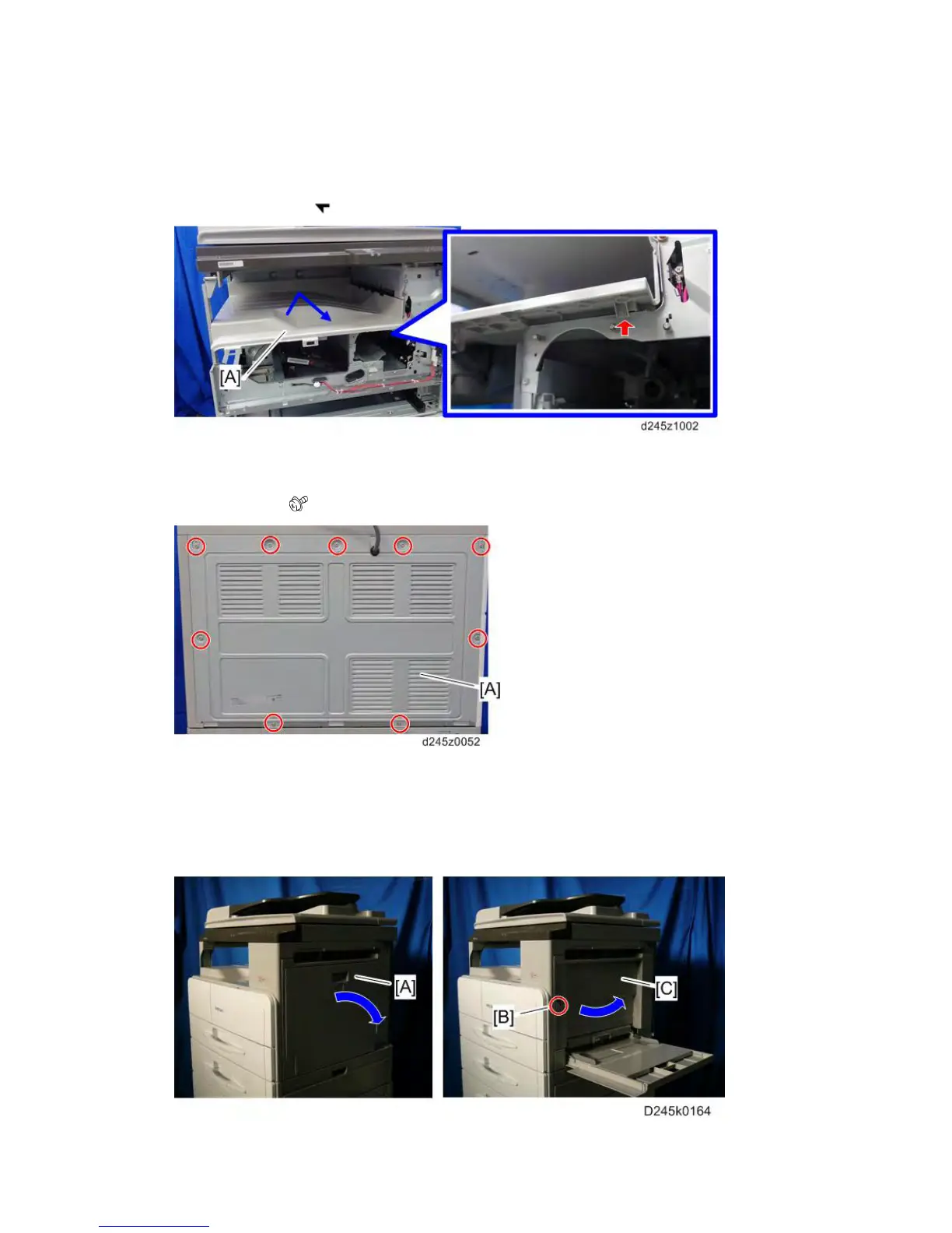 Ricoh MP 2014AD - Paper Exit Tray; Rear Cover; Right Door