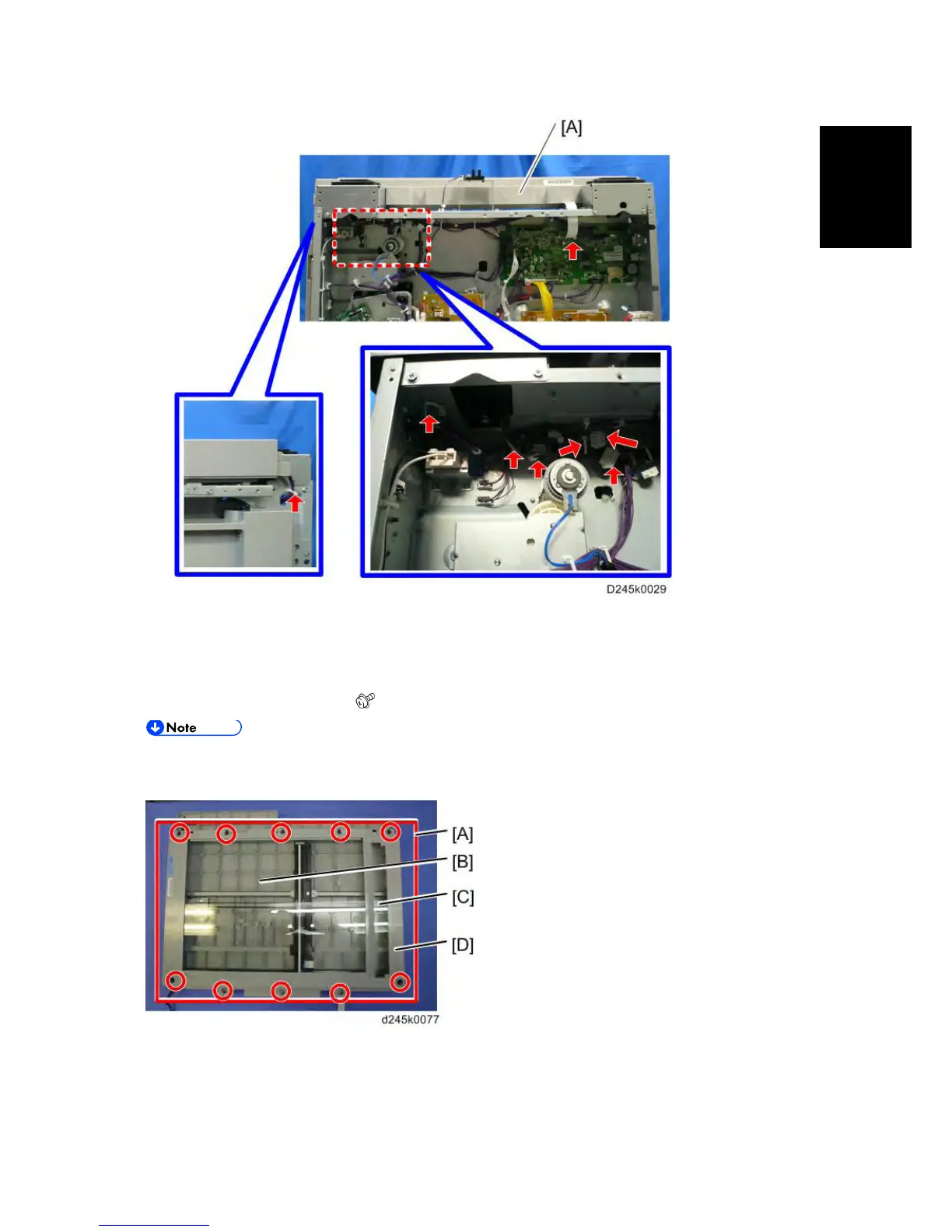 Exposure glass [B], DF exposure glass [C] and cover [D] are all in one unit.