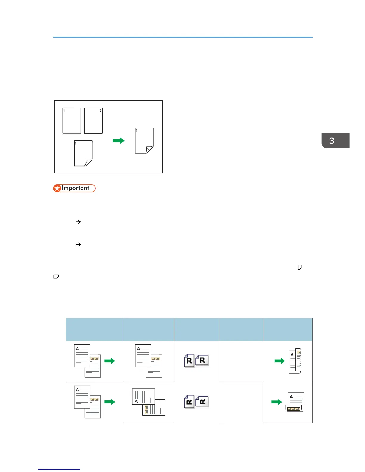 Copies two 1-sided pages or one 2-sided page onto a 2-sided page. During copying, the image is