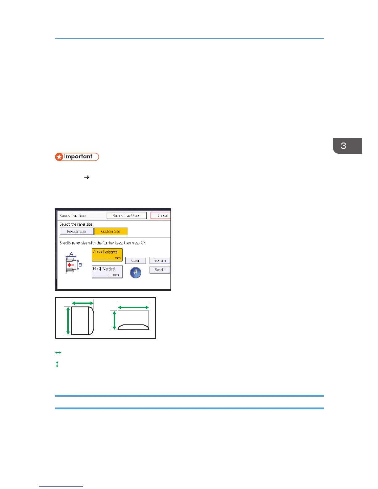 To copy onto custom size envelopes, you must specify the envelope's dimensions. Specify the horizontal