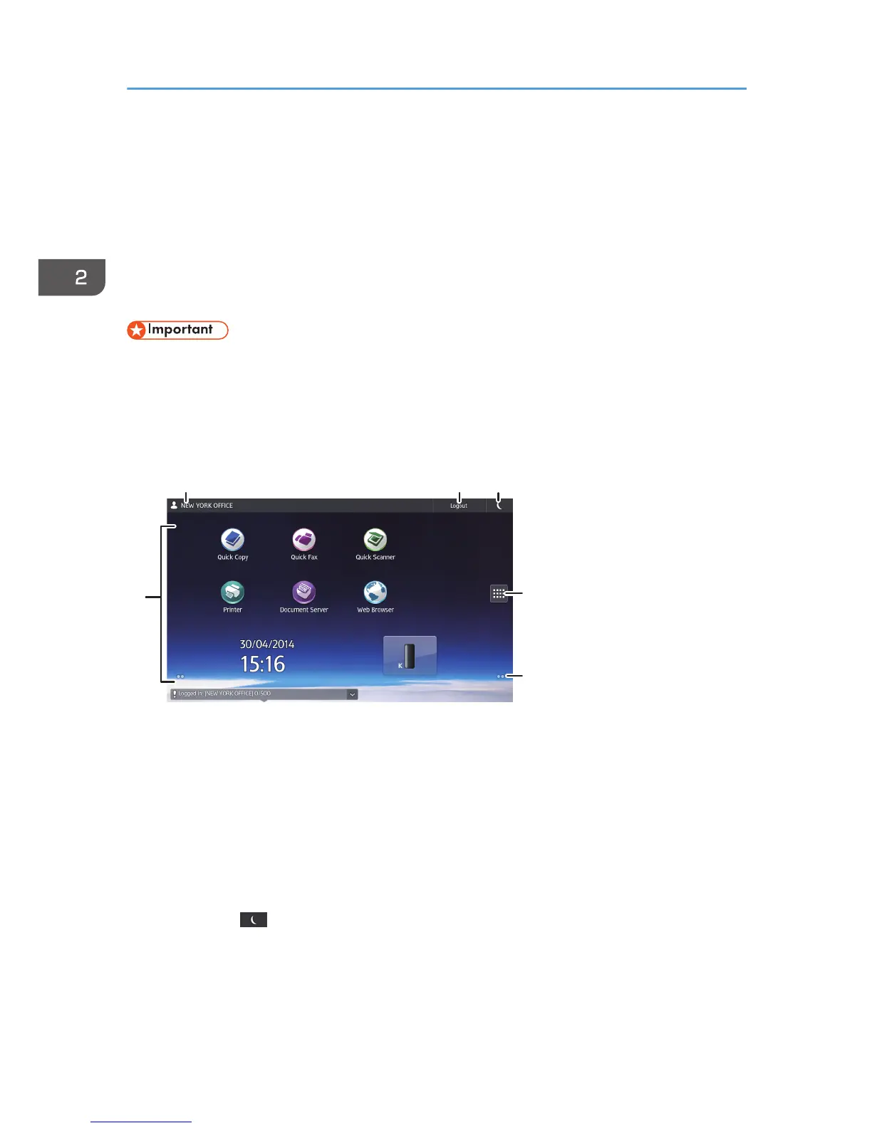 screen appears. If you have been already logged in to the machine, [Logout] appears. To log out of the