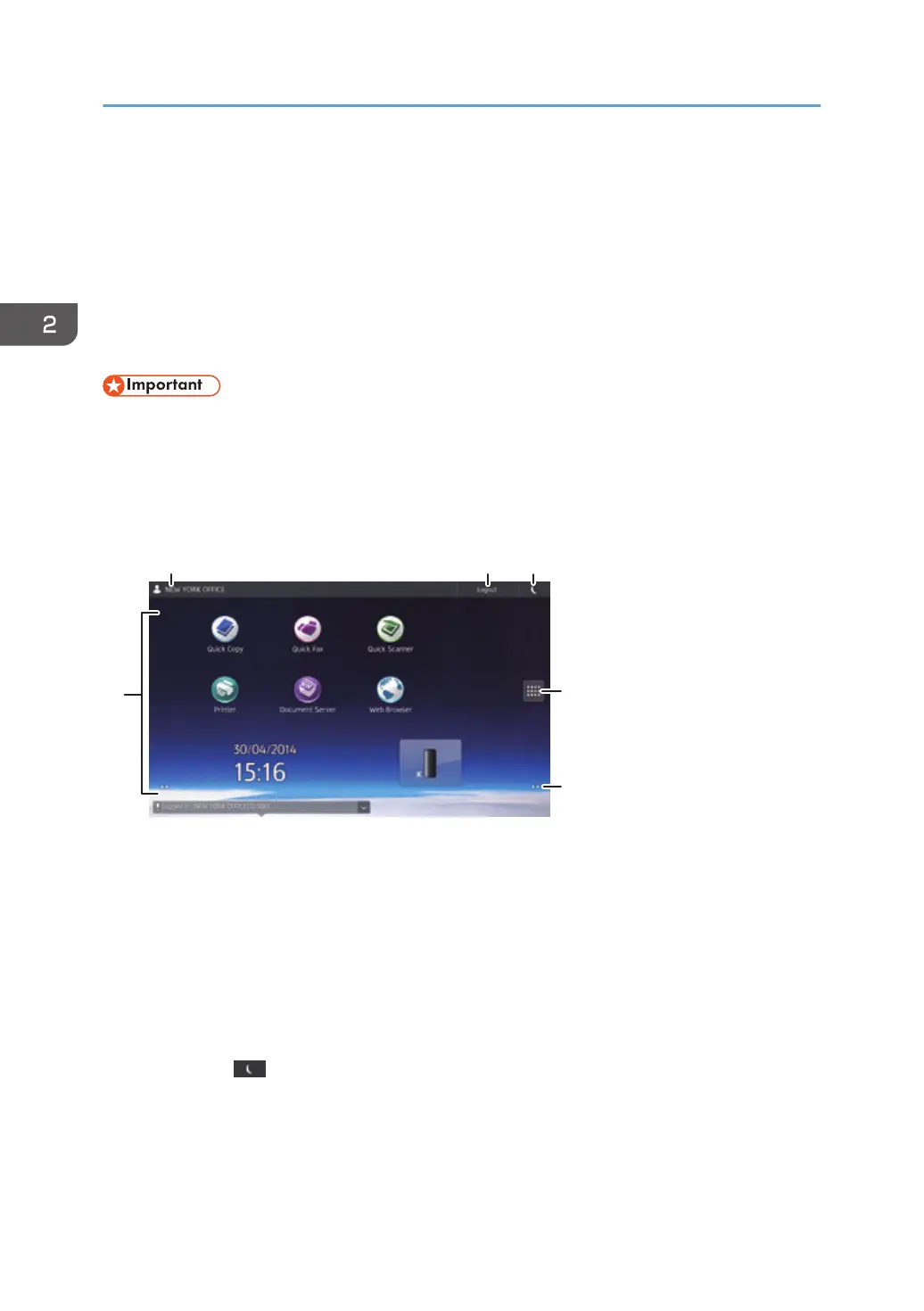 The [Home] screen of the Smart Operation Panel consists of five screens, from Home screen 1 to Home