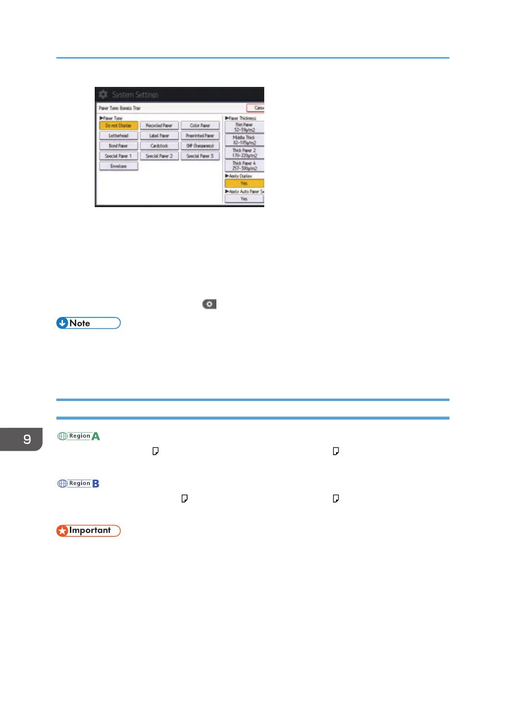 • For details about paper thickness, see "Tray Paper Settings", Connecting the Machine/ System