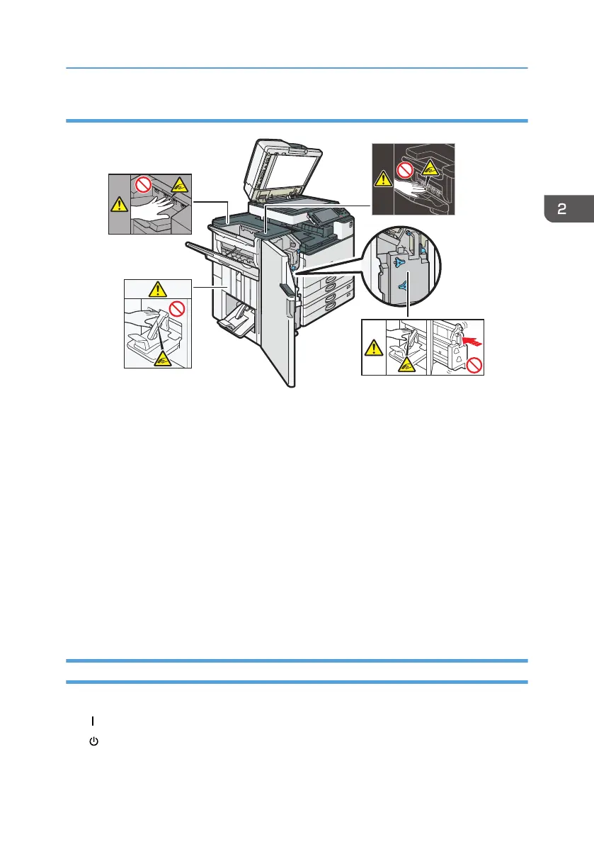 or removing paper jam. You might trap your fingers if you do not. Take care not to touch the booklet