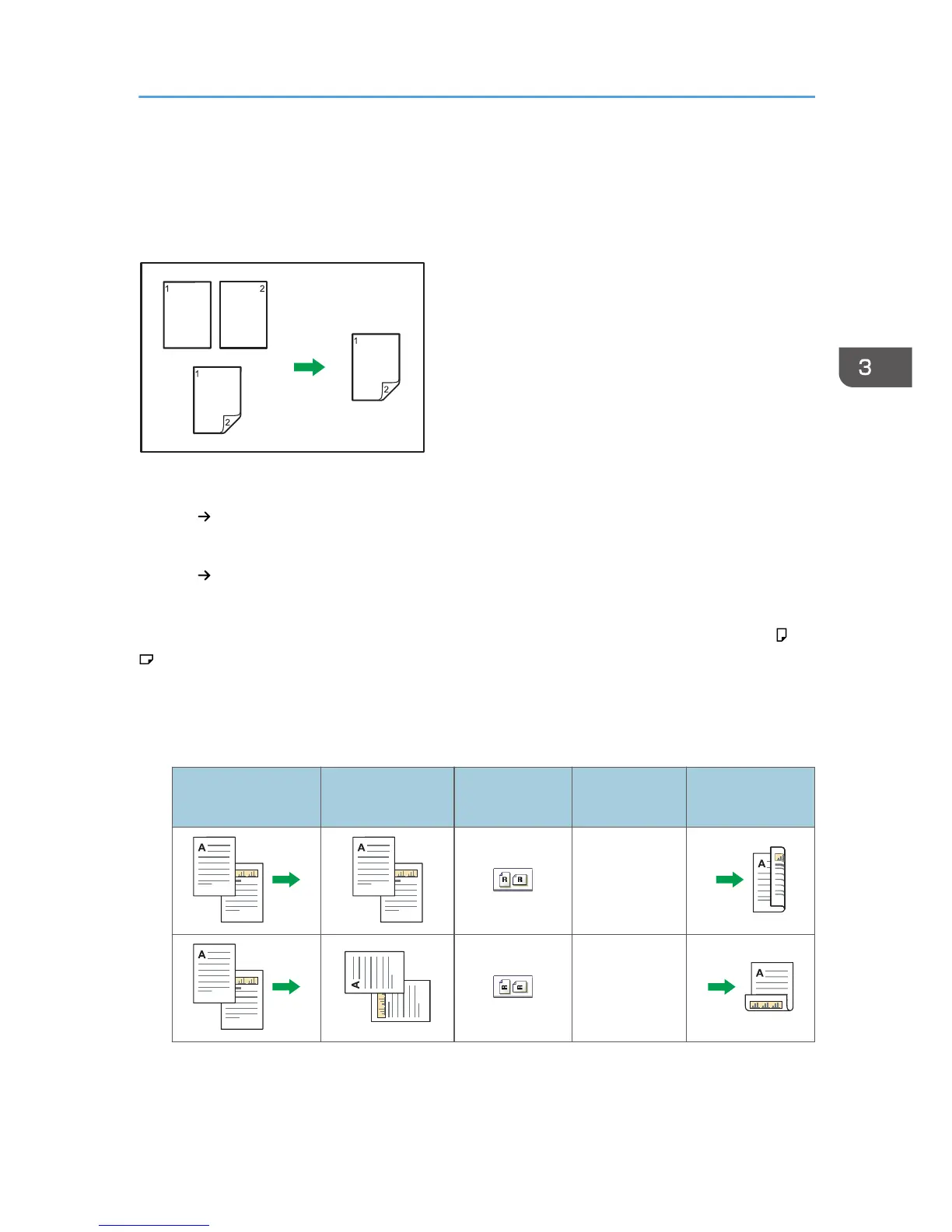 Copies two 1-sided pages or one 2-sided page onto a 2-sided page. During copying, the image is