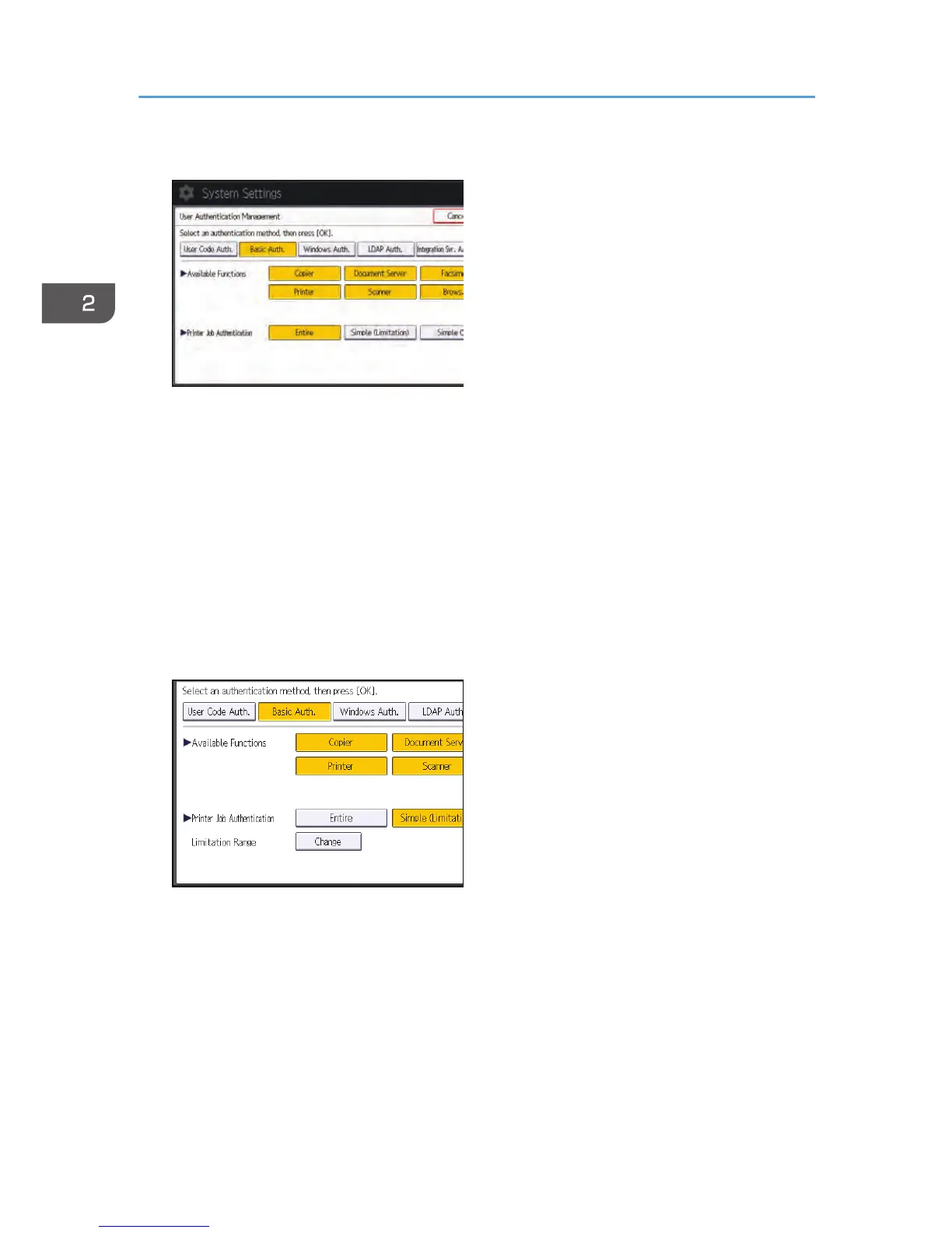 For a description of the printer job authentication levels, see page 63 "Printer Job