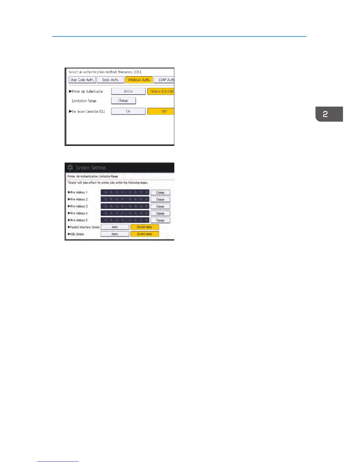 13. Specify the range in which [Simple (Limitation)] is applied to "Printer Job Authentication".