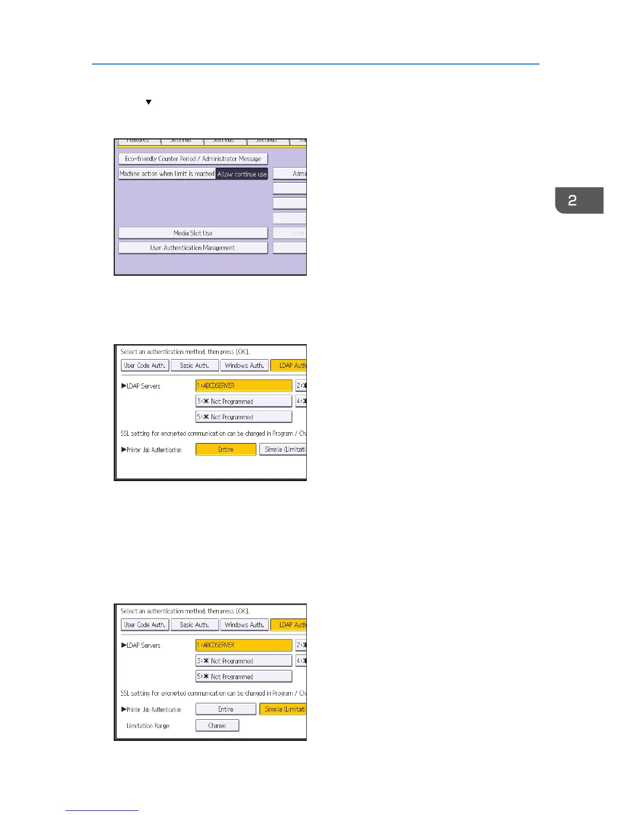 For a description of the printer job authentication levels, see page 63 "Printer Job