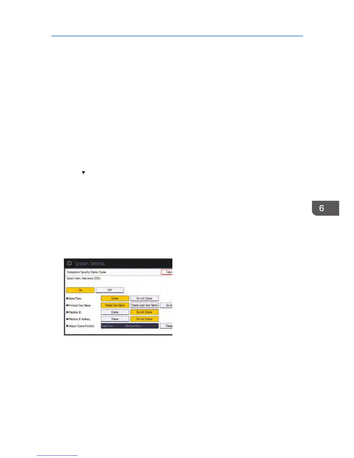 • To set the Document Server to be stamped, press [Compulsory Security Stamp:Doc. Srvr.].