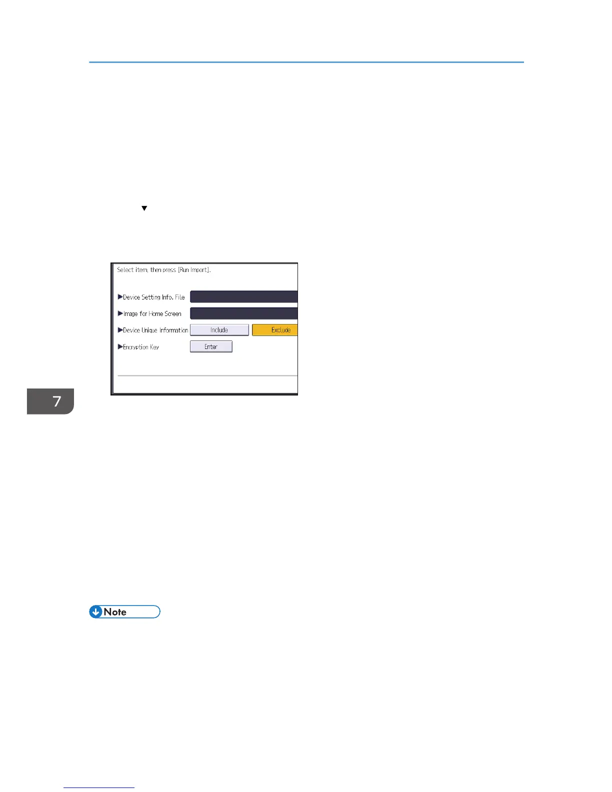 6. Press [Device Setting Information: Import (Memry Strge Devc)].