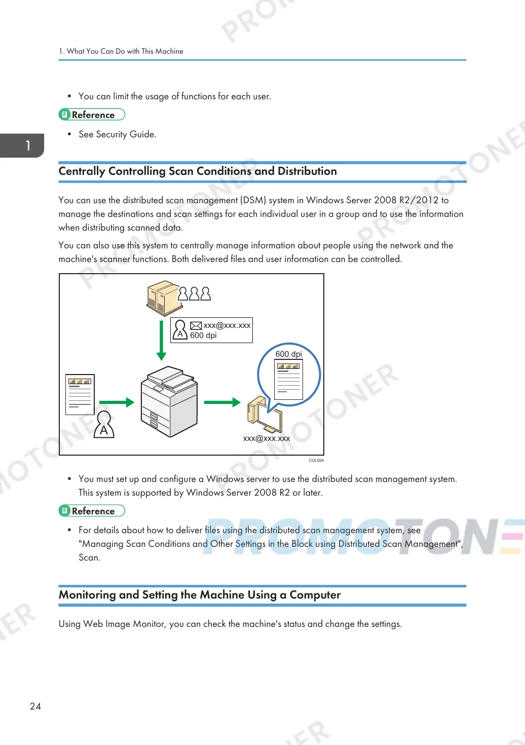 • You must set up and configure a Windows server to use the distributed scan management system.