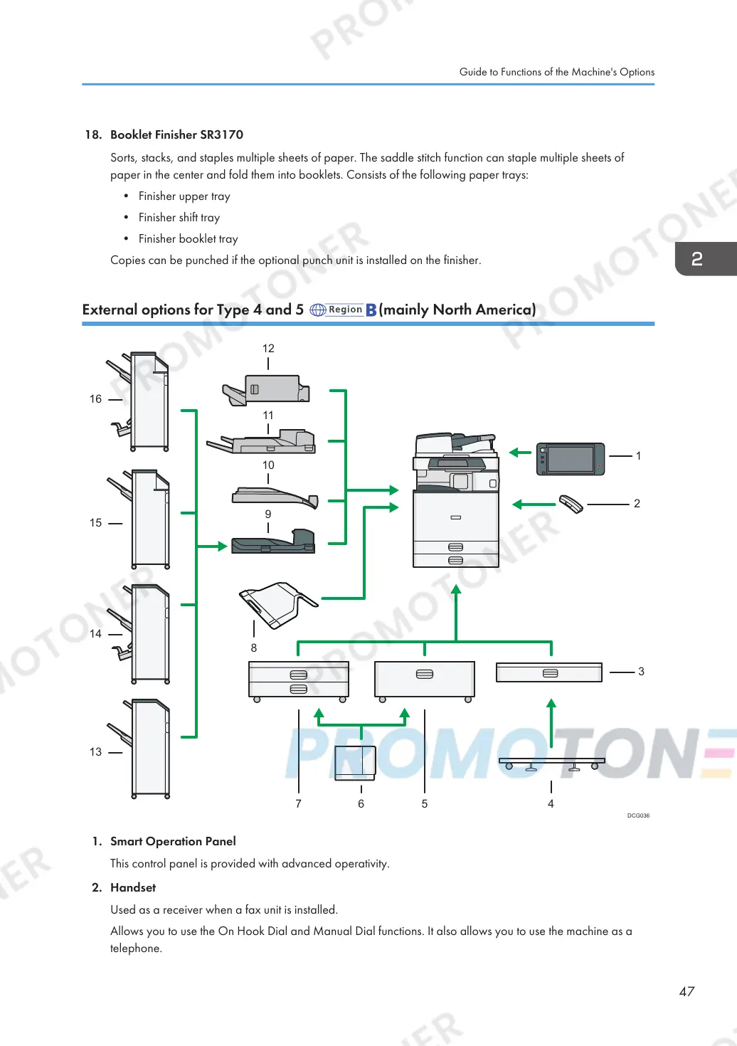paper in the center and fold them into booklets. Consists of the following paper trays: