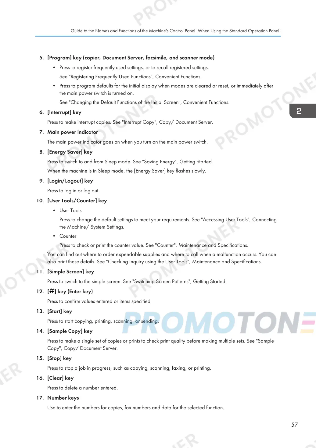 5. [Program] key (copier, Document Server, facsimile, and scanner mode)