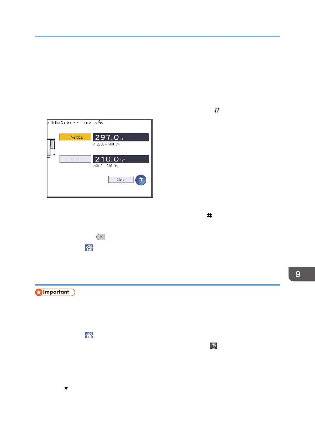 9. Enter the vertical size using the number keys, and then press [ ].