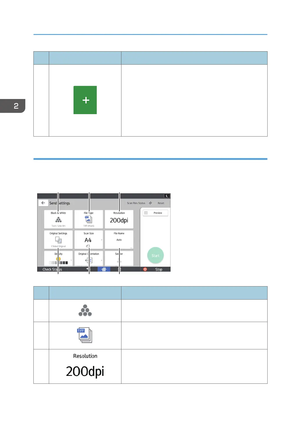 Press to select the resolution to scan the original.